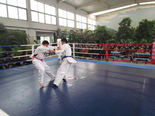 背摔、抱雙腿扛摔、抱單腿枕、抱腿功、掏腿、扣腿、揣絆功這些很專業(yè)的動作,在我們太極這群男子漢身上卻都是那樣運用自如。比賽期間太極公司散打隊員也上臺即興表演,更是有我們太極的“歌手”獻(xiàn)歌助興,掌聲、喝彩聲、吶喊聲、歡笑聲……此時此刻每一個太極人都無比的歡樂和驕傲。