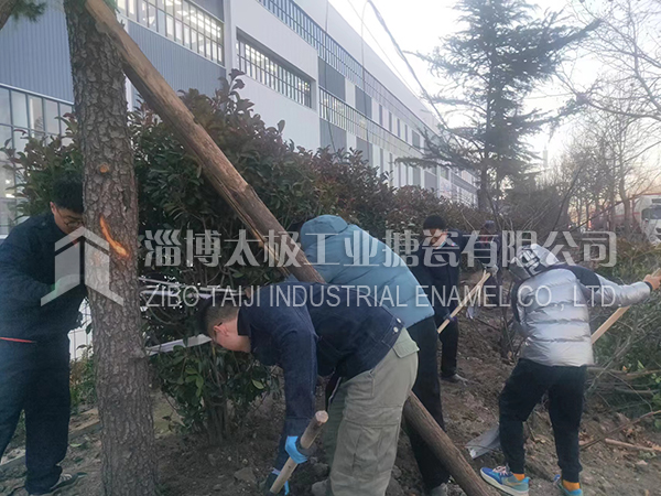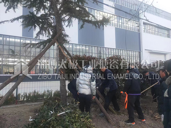 “一年之計在于春”,2022年2月4日(立春)上午8點開始,淄博太極工業搪瓷有限公司的辦公后勤人員齊上陣,種下一顆顆樹苗,把太極新廠區進行全面綠化。