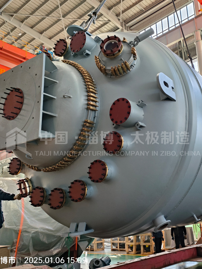 1 月 8 日,太極公司 8 萬升閉式搪玻璃反應釜完成整裝發貨。設備融合 36 項專利技術,采用全封閉承壓設計,搭配自研高性能瓷釉,耐酸堿腐蝕性能達國際先進水平。此次發貨不僅創下企業大型設備交付新紀錄,更彰顯其在高端搪玻璃裝備領域的制造實力。