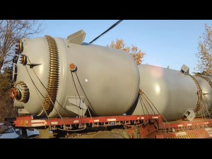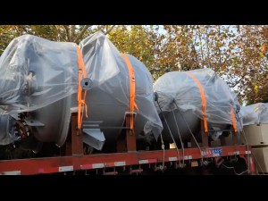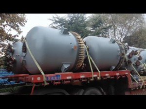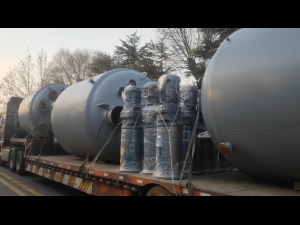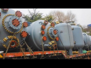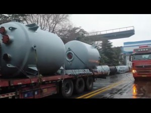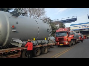 4.5萬升上封頭外包不銹鋼搪玻璃反應釜發貨現場
